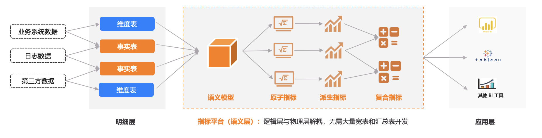 (图 2:引入指标平台,对接明细层数据,系统代持数仓应用层 ETL)