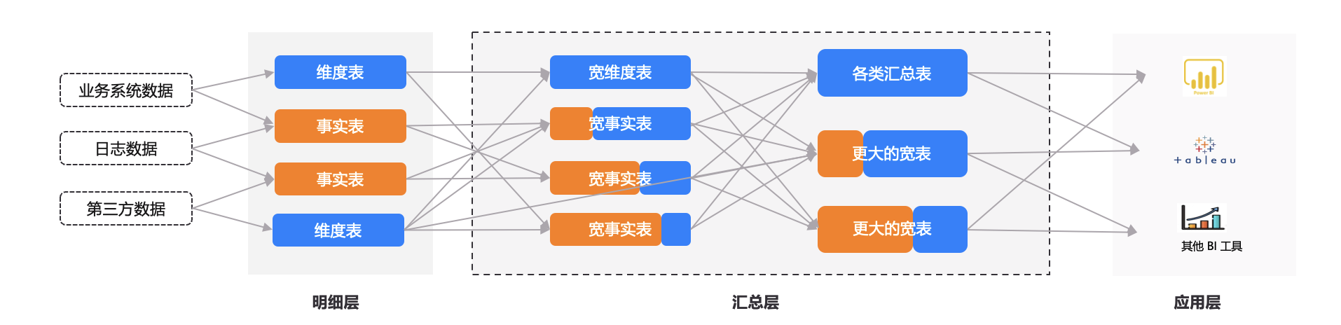 在计算机领域,数据仓库是一个比较“古老”的概念,经过三十多年的发展,建立了成熟的技术体系与方法论。然而,数据仓库是为稳态的数据分析场景而设计的,典型应用是管理驾驶舱;移动互联网和云计算的蓬勃兴起让“大数据”成为必然,不仅数据源、数据类型不断丰富,数据量爆炸式增长,敏态的数据分析需求更成为常态,让传统的数仓分层建模体系招架不暇。