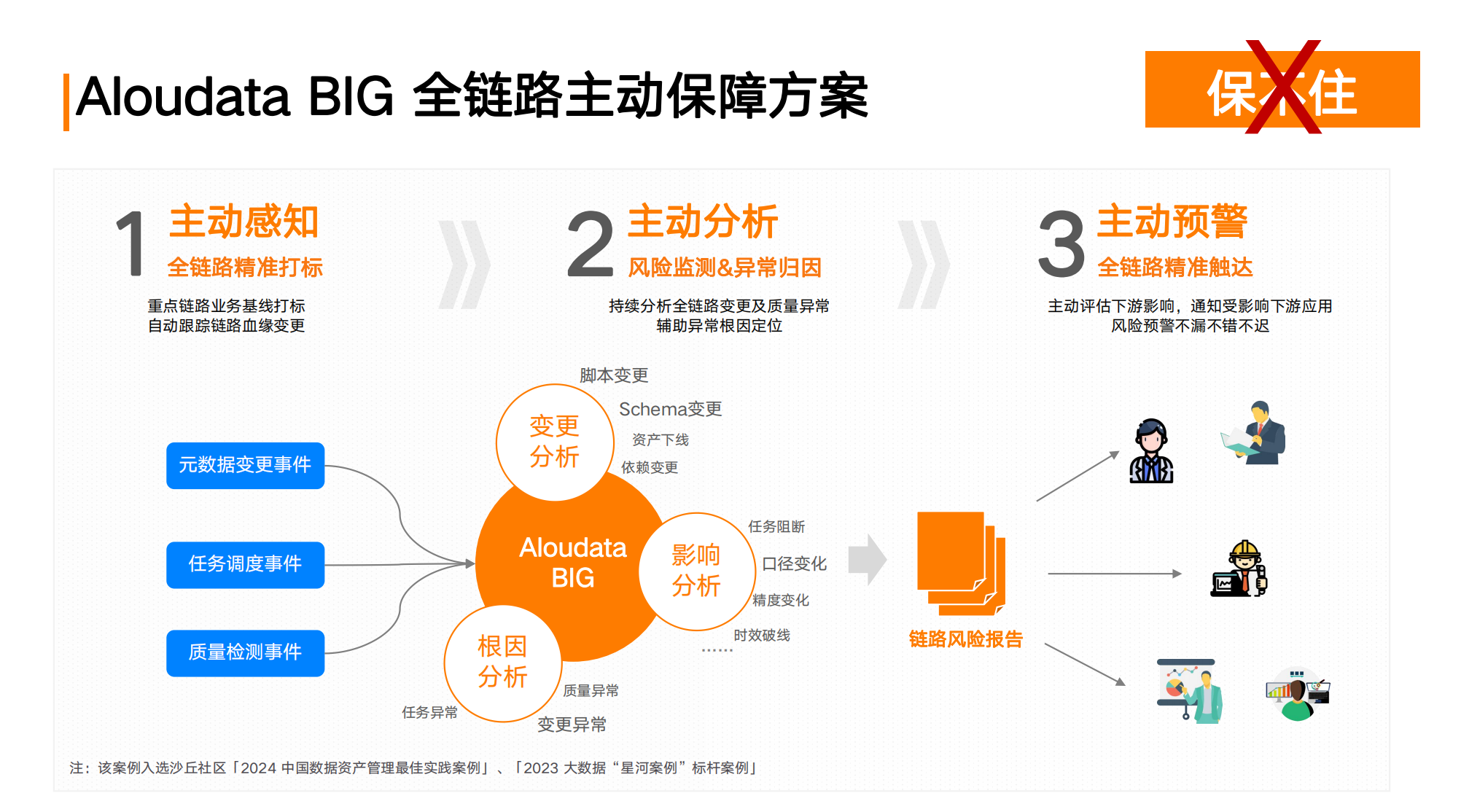 最后要解决“保不住”的问题,主要通过我们提供的 Aloudata BIG 全链路主动保障方案来实现。