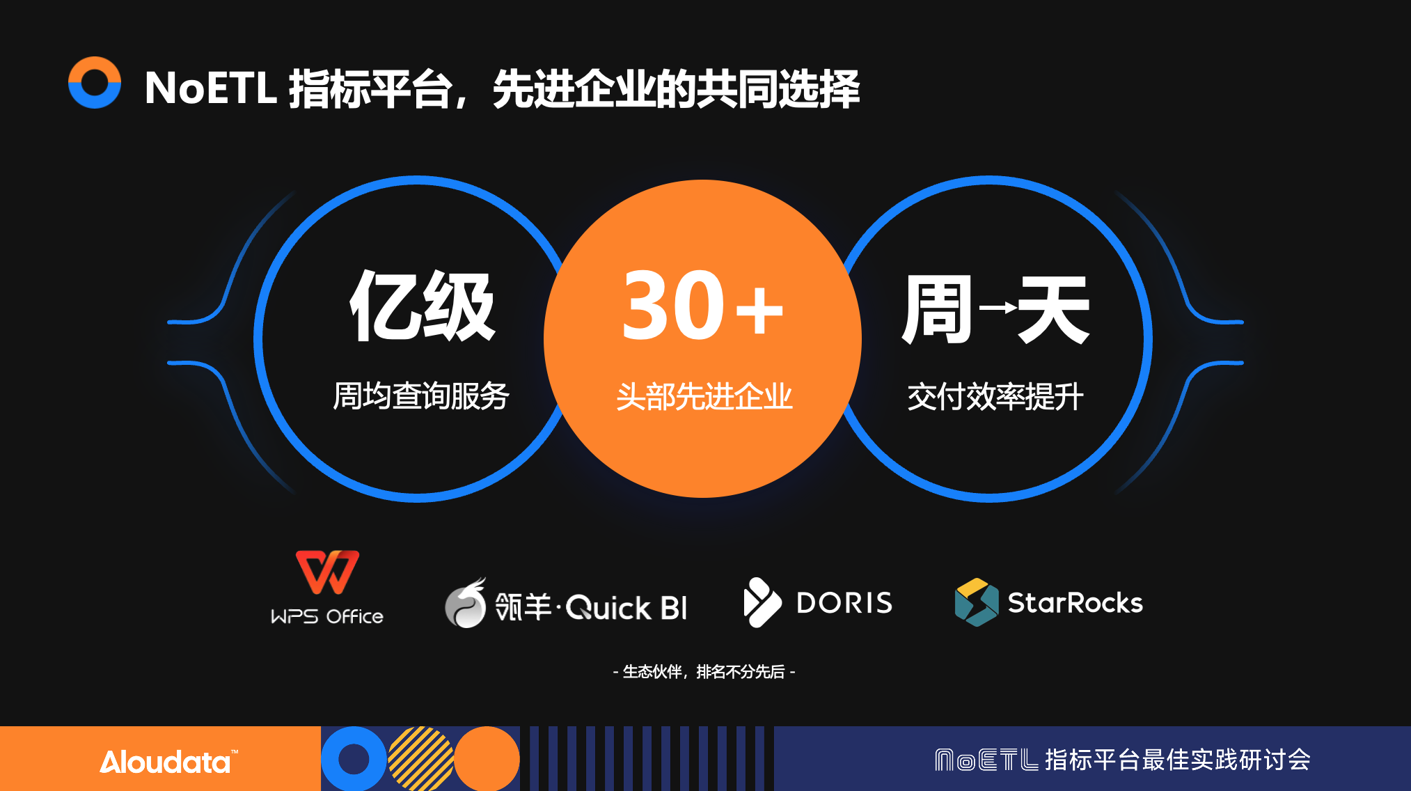其次,作为 NoETL 指标平台,我们特别关注研发效能的提升。过去企业开发一个需求可能需要 1 到 2 周,紧急情况下也需要几天,而现在简单需求只需几分钟,复杂需求也仅需天级别即可交付。研发提效这一点,刚刚的几位嘉宾也都有提到。