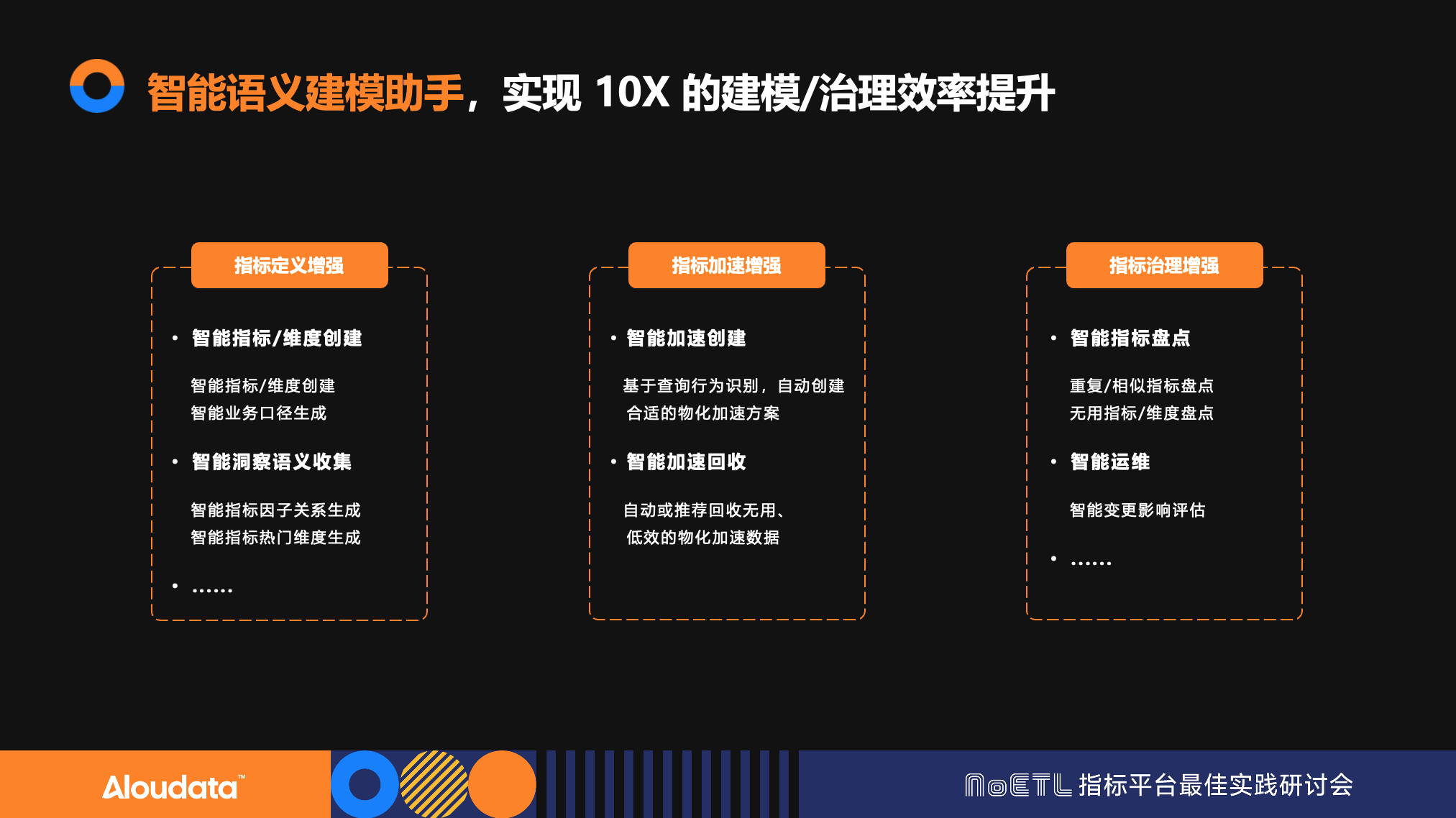 过去一年,我们与客户合作,致力于实现基于明细数据的指标定义和自动化加速,通过指标的定义、研发和管理一体化,确保 Aloudata CAN 能够为业务提供更灵活、更一致的数据消费体验。