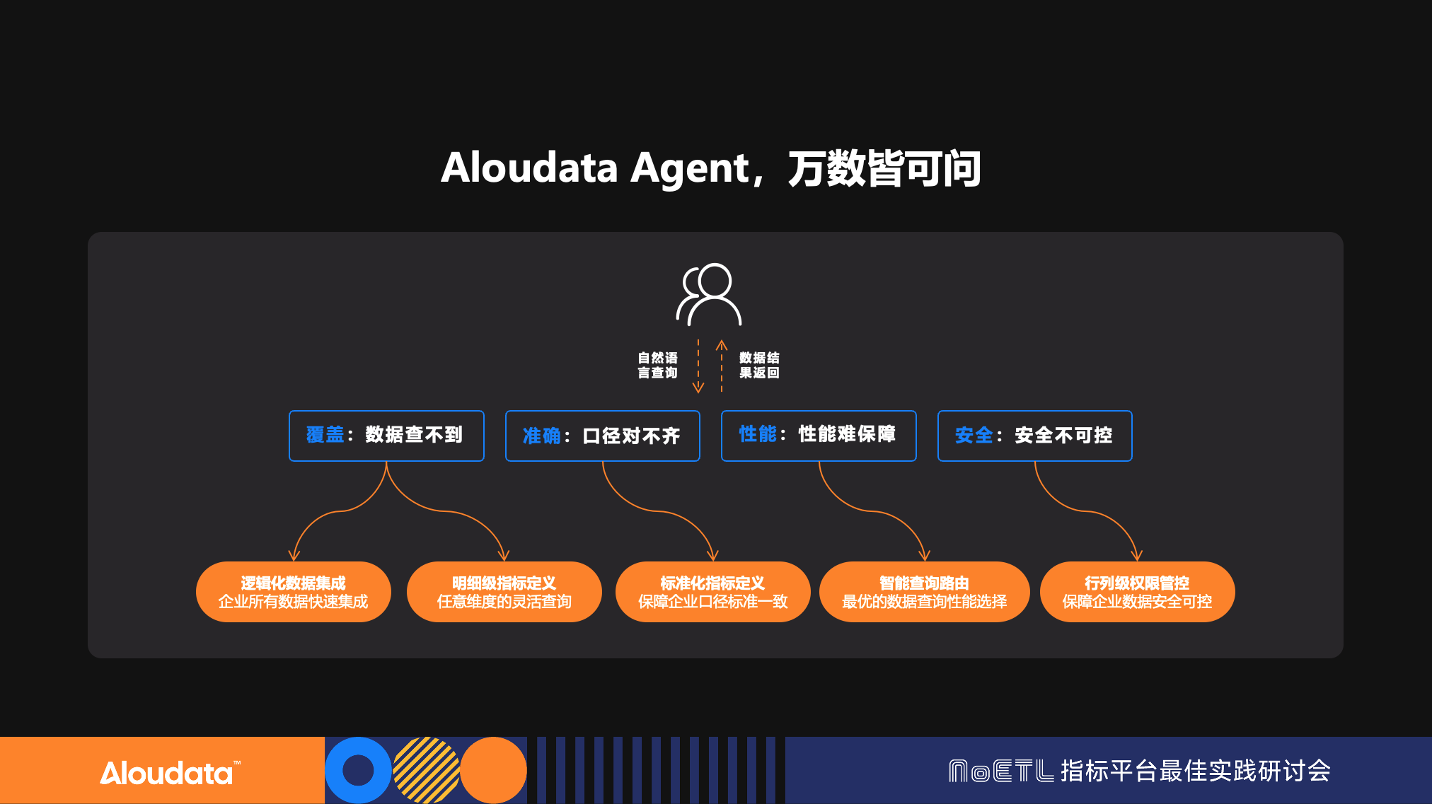 总之,“万数皆可问”不仅是一个愿景,更是我们通过技术手段实现的承诺。我们希望通过一个强大的 NoETL 数据底座,为上层的 Aloudata Agent 提供更完整的数据覆盖、更精准的数据语义、更强大的查询性能和更可靠的安全保障。