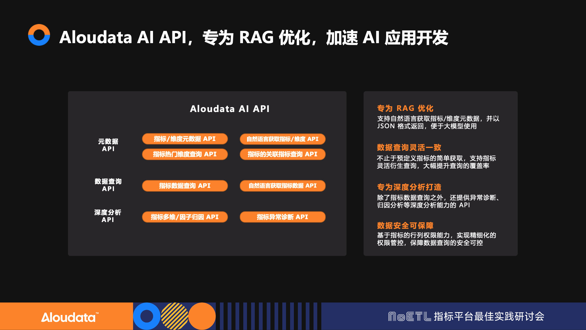 在推出自研的 Aloudata Agent 的同时,我们还会提供一组面向 AI 的 API 和 SDK,以赋能企业快速实现 AI 应用创新,构建智能体生态