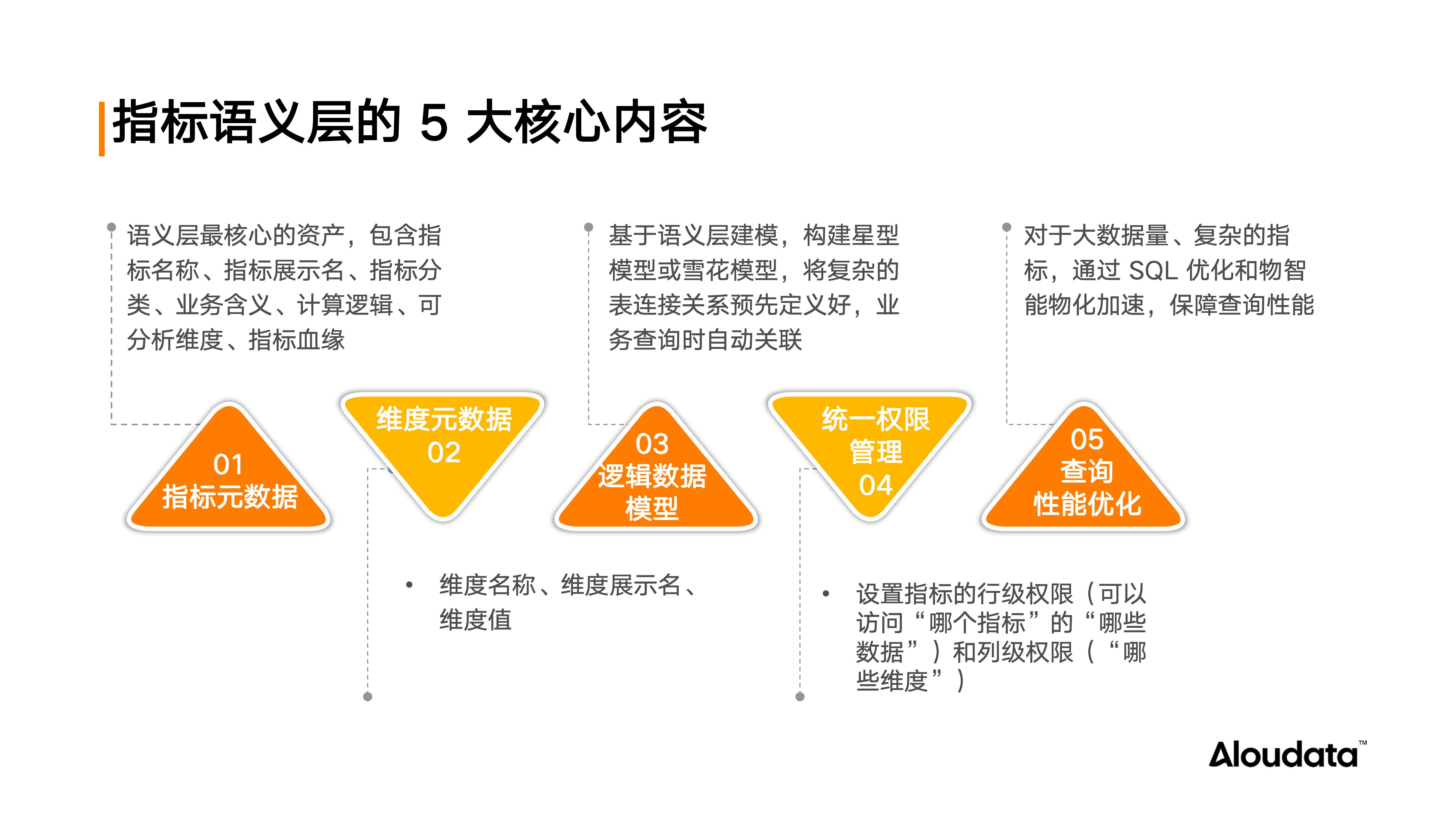 Aloudata Agent 内置的指标语义层包含 5 大核心内容和能力: