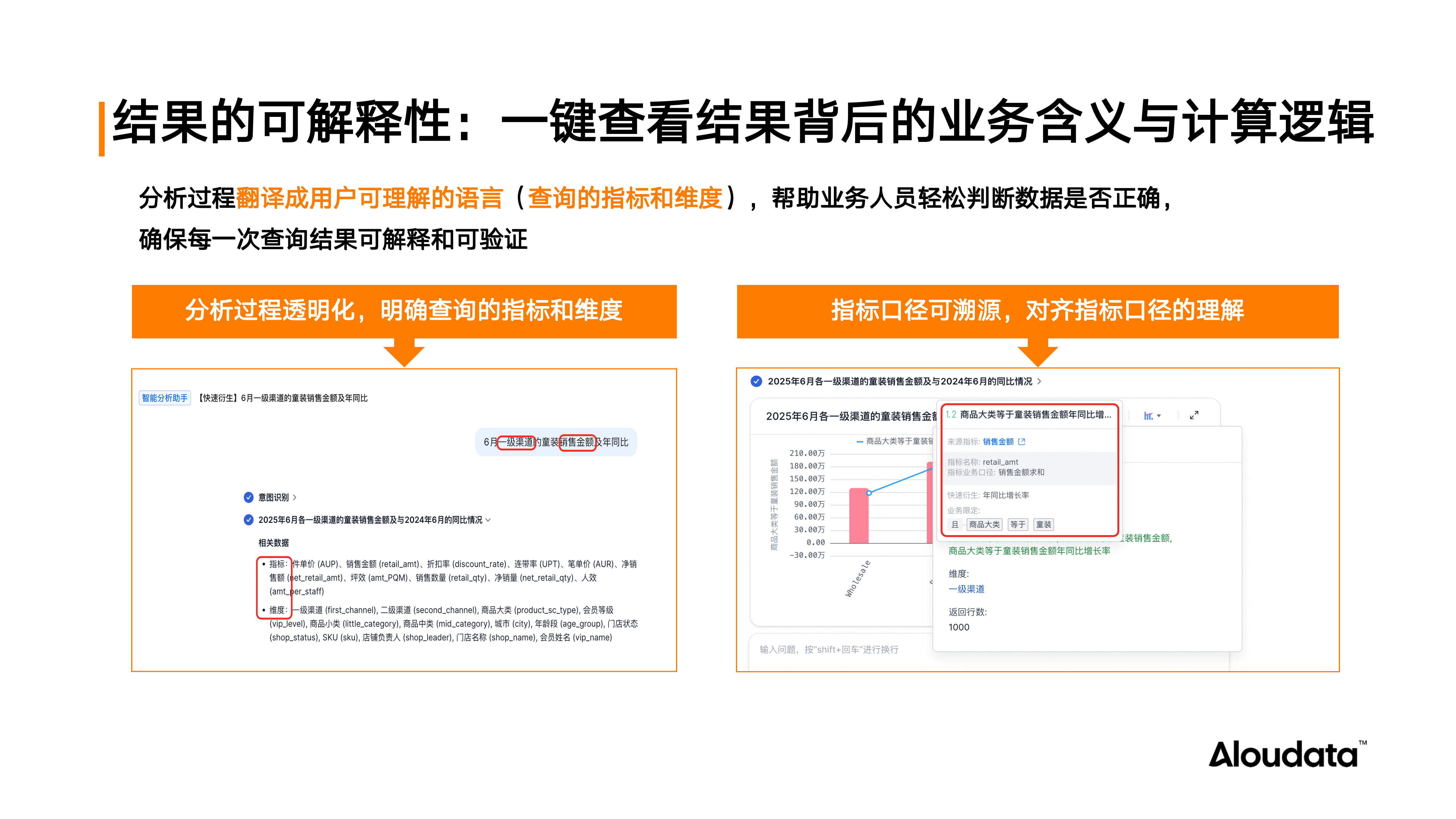 对于查询结果,确保业务人员可以判断与验证数据准确性至关重要,即结果的可解释性。传统 NL2SQL 模式下,业务人员看不懂 SQL,无法判断结果是否可信。