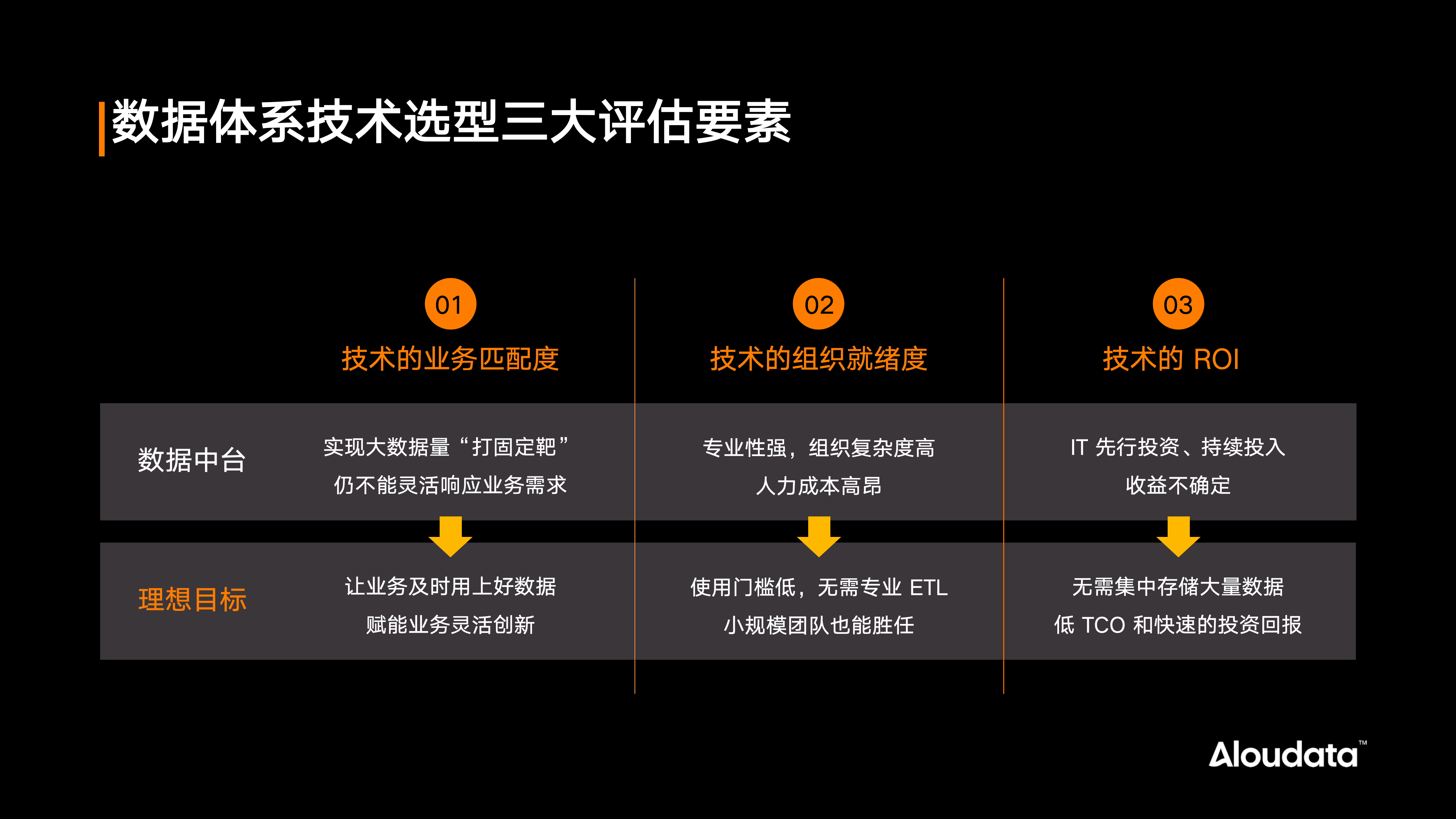 技术的 ROI:传统数据中台方案往往需要先期投入大量资源构建基础设施,回报周期较长,且需要长期持续投入,而投资的收益又并不够清晰可衡量。因此,企业应寻求一种轻量级、高效益的技术方案,无需大规模的数据集中存储,能够快速部署并产生实际业务价值。