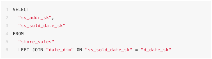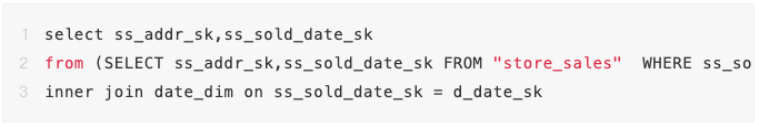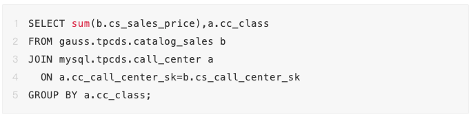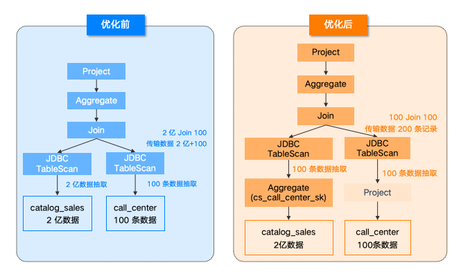 1.下推场景举例:我们以 TPCDS 中的 catalogsales 和 callcenter 表的查询为例,假设存在以下 SQL,两张表分别来自不同的源。