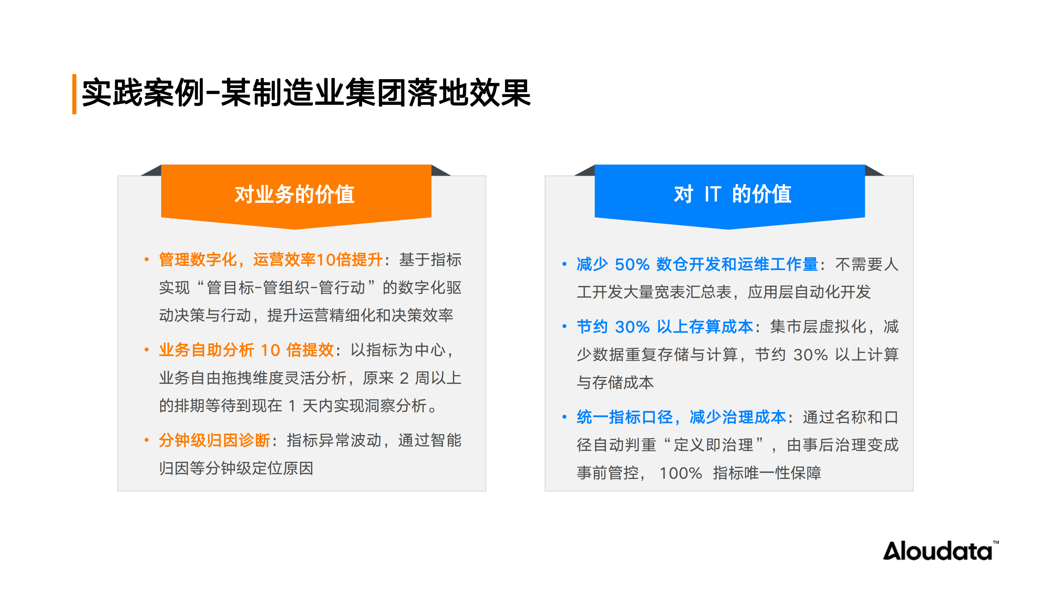 总结起来,Aloudata CAN 自动化指标平台在该企业的业务与 IT 两个层面均展现出显著价值。