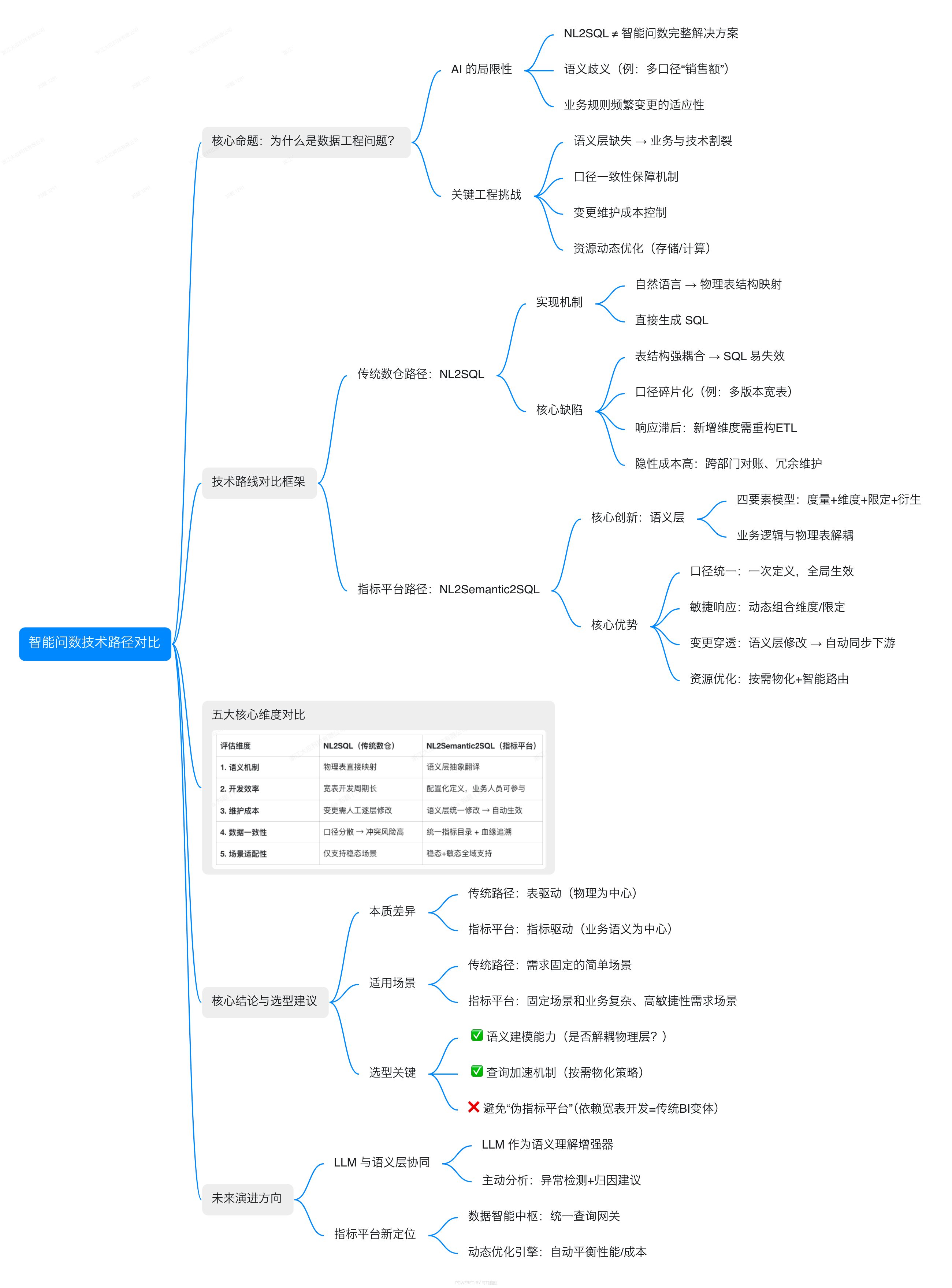 我们将重点揭示,后者如何通过构建强大的“语义层”这一数据工程核心组件,系统性解决上述挑战,为企业实现真正可用、可信、可持续的智能问数能力提供坚实的数据工程基础。理解这两种路径的差异,对于企业在数智化转型中做出明智的技术选型至关重要。