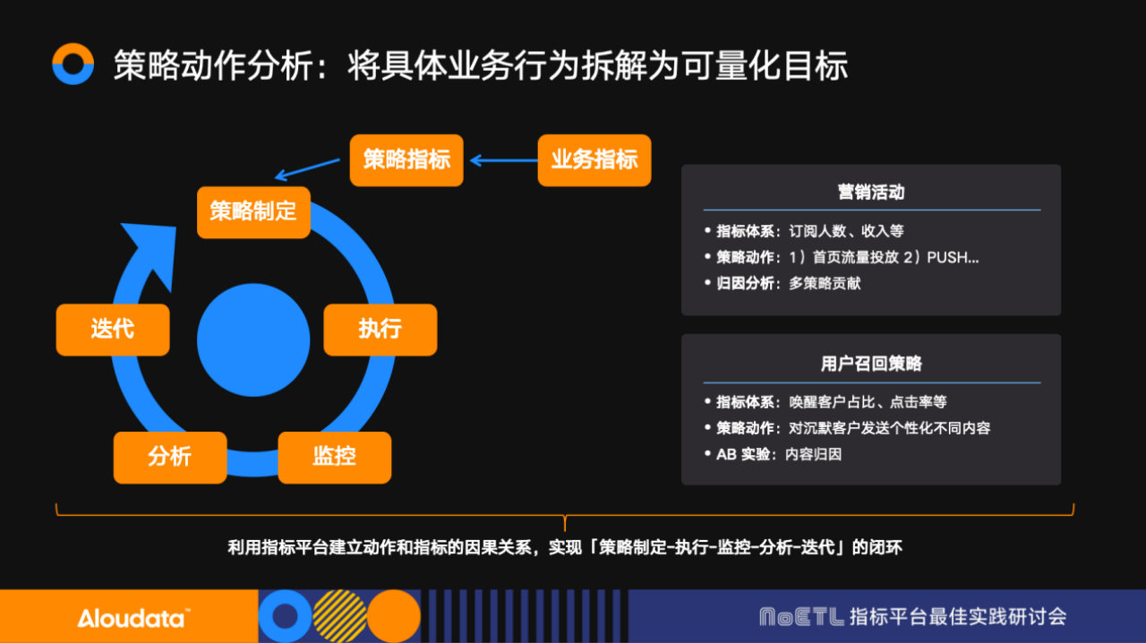 通过指标平台与策略平台的打通,我们实现了对策略动作的深入分析。具体而言,公司内部会设定一些关键指标,并将这些指标分解到各个运营团队,例如用户经营或策略投放等。通过指标体系与策略动作的快速闭环,公司能够清晰地了解每一个策略对指标的贡献度以及影响范围,从而帮助公司识别哪些策略是有效的,哪些策略效果不佳,筛选出更有效的策略,实现更精准的资源投放。