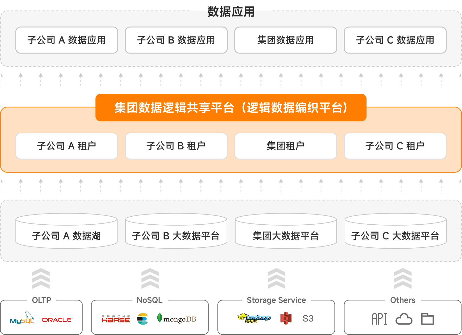 基于租户授权范围,实现数据的逻辑集成,权责并不会随着数据的共享使用而改变。