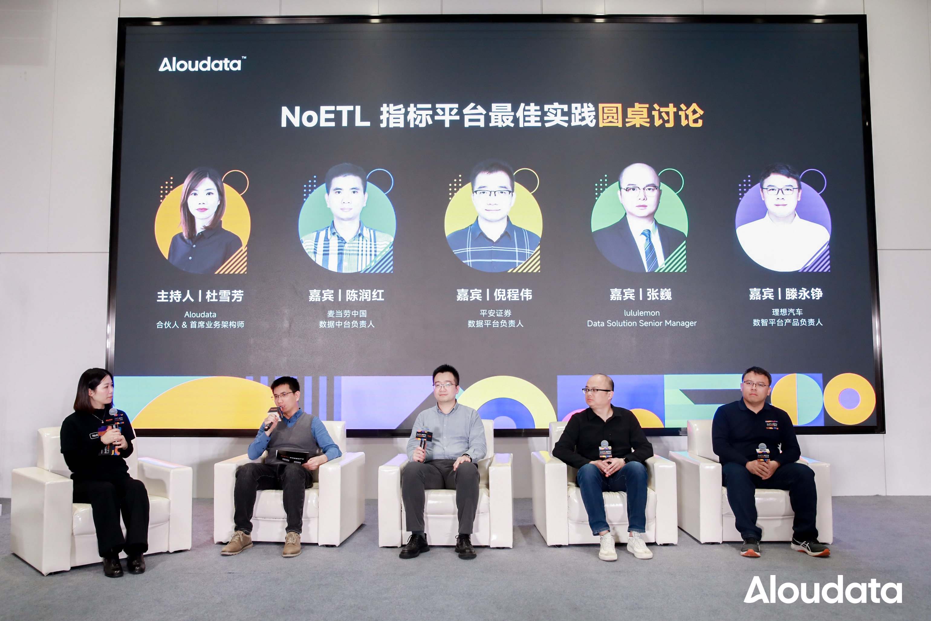 在会上,围绕企业关注的“指标平台选型标准、落地实施、价值评估”等切实问题,Aloudata 合伙人 & 首席业务架构师杜雪芳同陈润红、倪程伟,以及 lululemon Data Solution Senior Manager 张巍、理想汽车数智平台产品负责人滕永铮展开圆桌讨论。