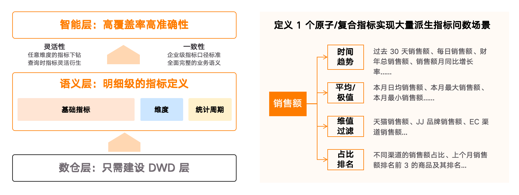 ● 口径统一:结合统一的指标语义管理,确保无论谁提问、如何提问,指标的计算口径始终保持一致;
