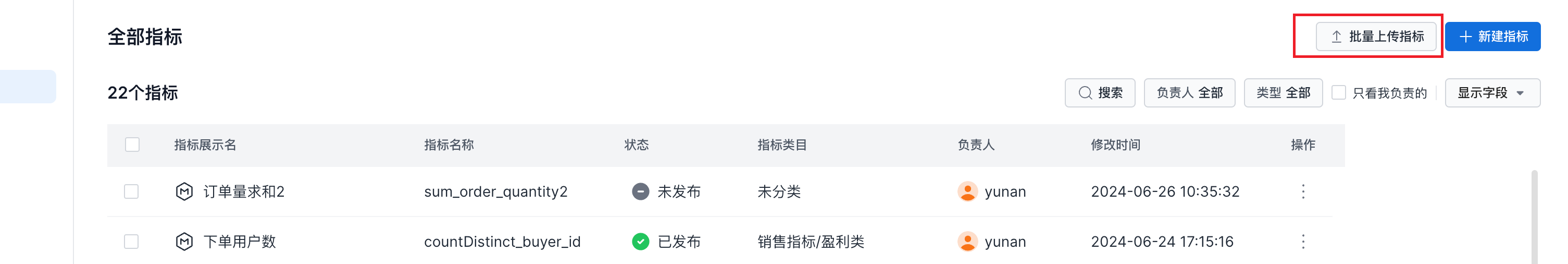 新增批量上传指标,支持自动化创建指标,支持指标框架梳理