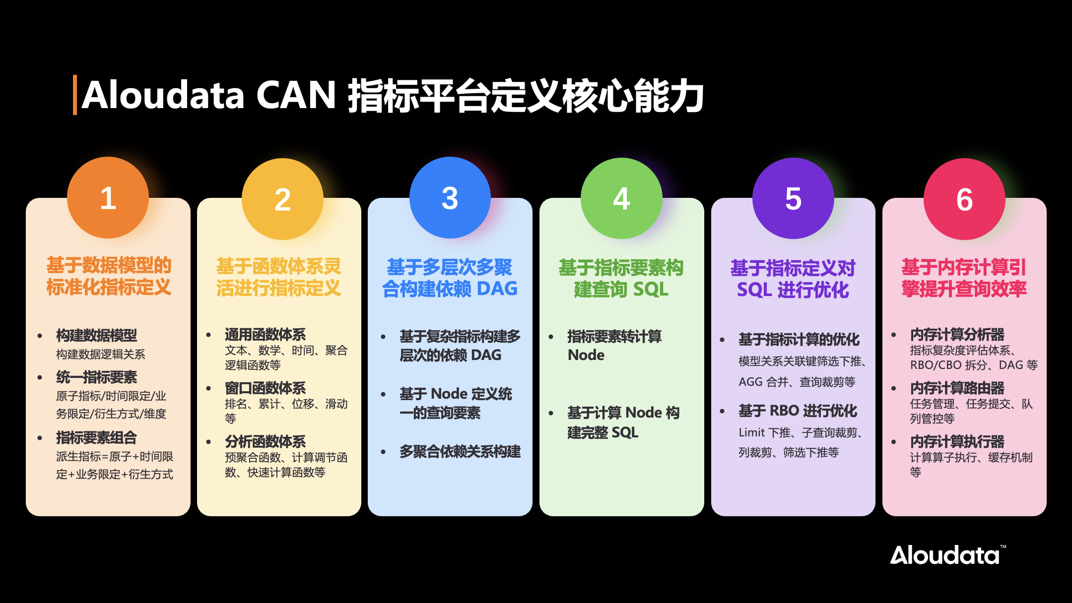 Aloudata CAN 以强大的指标定义能力著称,其背后有六大技术支撑能力: