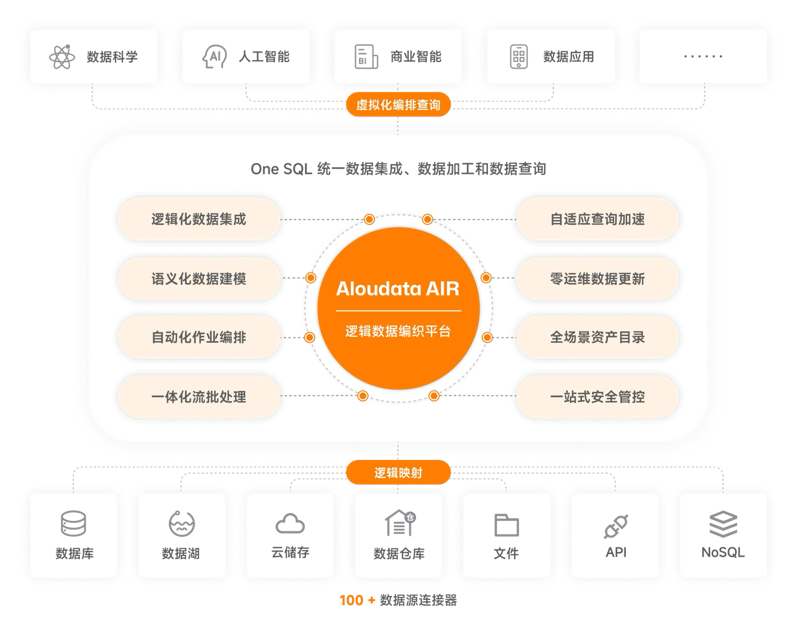 在此基础上,Aloudata 自研了 Data Fabric 落地的关键技术——数据虚拟化引擎,并打造了国内首个逻辑数据编织平台 Aloudata AIR,帮助企业轻松实现全域数据的敏捷、高效、安全访问与集成交付,让业务及时用上好数据。依托智能查询下推和 AI 增强的自适应物化加速技术,Aloudata AIR 能够 10 倍提升查询性能,显著提升数据交付效率。这些特性,对业务自服务场景和数据民主化极为友好。