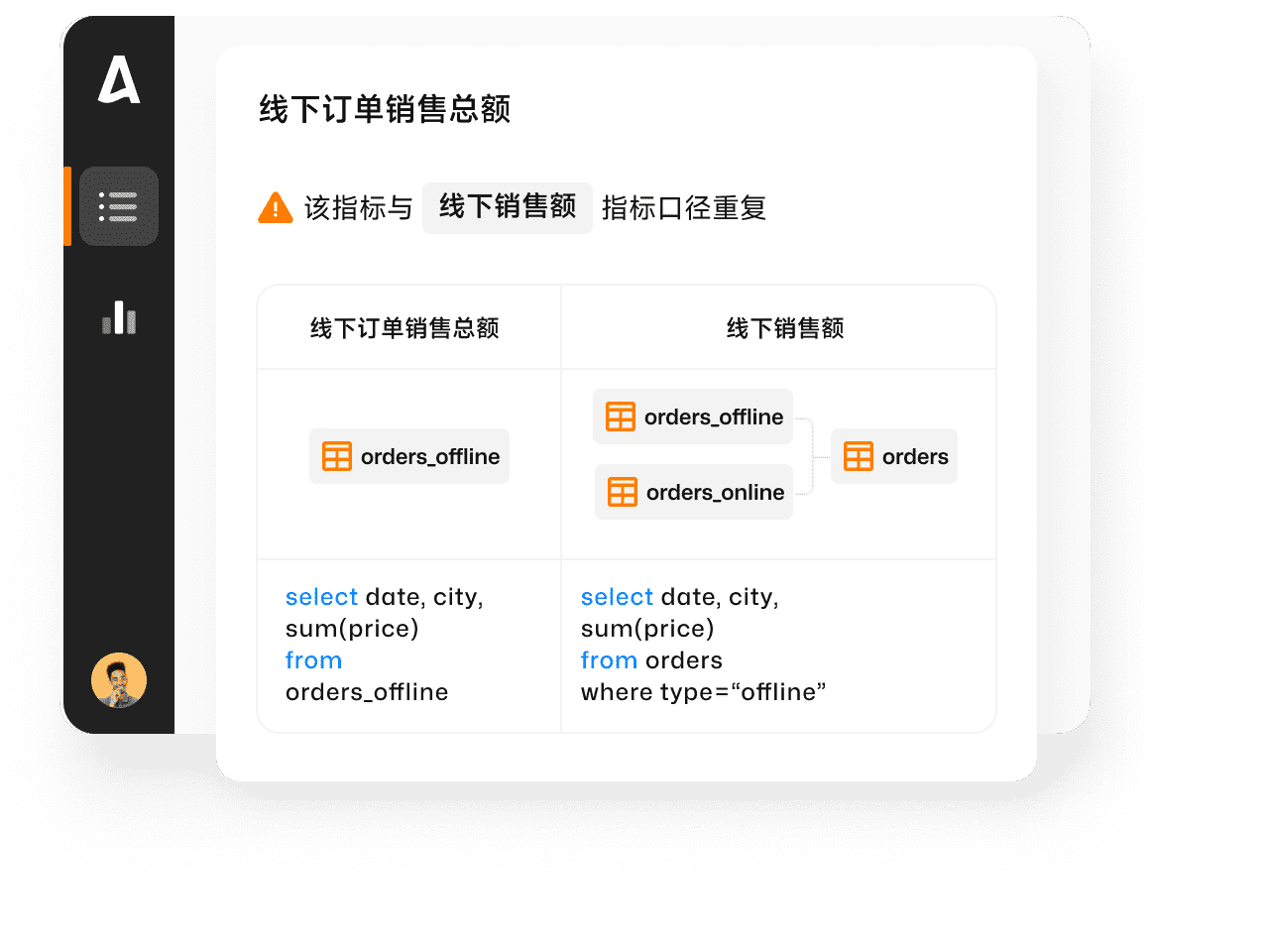 Aloudata 内置算子级指标口径提取,实现了指标计算口径的全局判重,而不止于指标名称判重,真正保障了指标的同名同义。另外,当指标的业务定义发生变化导致计算口径变更时,Aloudata 会自动进行指标数据更新,让指标的业务定义和背后的数据始终保持一致。