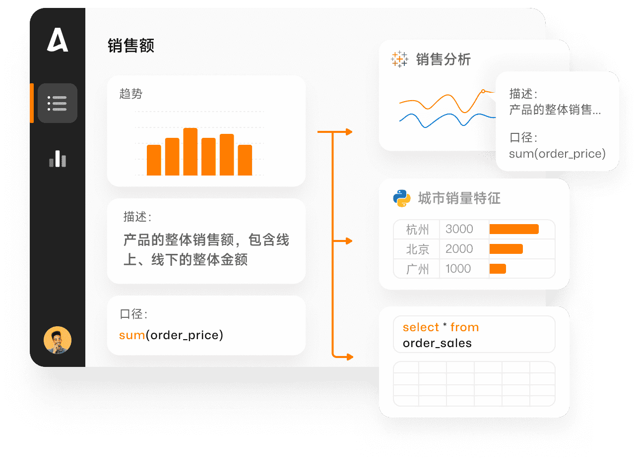 Aloudata 提供了 JDBC、ODBC、Rest API 多种标准化接口,可无缝将指标数据接入下游消费工具,并支持将指标业务定义嵌入下游工具中以增强用户对指标业务含义的理解。